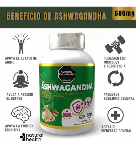 Ashwagandha Con Maca Negra Roja Y Amarilla X100 Sabor Neutro Natural