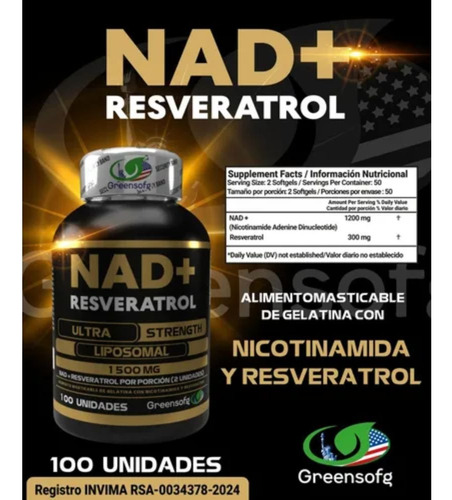 Nad + Resveratrol Liposomal 1500 Mg Invima X100 Capsulas Neutro